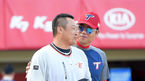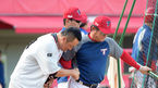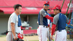 [OSEN=광주, 이대선 기자] 15일 오후 광주-KIA챔피언스필드에서 열릴 '2015 타이어뱅크 KBO 리그' KIA 타이거즈와 한화 이글스의 경기에 앞서 한화 김재현 코치가 KIA 코치진과 인사를 나누고 있다. KIA는 조쉬 스틴슨(27)을 선발 투수로