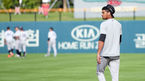 [OSEN=광주, 이대선 기자] 15일 오후 광주-KIA챔피언스필드에서 열릴 '2015 타이어뱅크 KBO 리그' KIA 타이거즈와 한화 이글스의 경기에 앞서 한화 로저스가 훈련을 위해 외야로 나가고 있다. KIA는 조쉬 스틴슨(27)을 선발 투수로 내세