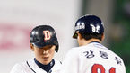 [OSEN=잠실, 민경훈 기자] 17일 오후 서울 잠실야구장에서 열린 '2015 타이어뱅크 KBO 리그' 두산 베어스와 롯데 자이언츠의 경기, 4회말 1사 주자 2,3루 두산 허경민이 중견수 왼쪽 2타점 적시타를 날린 후 1루에서 강동우 코치와 하이