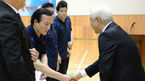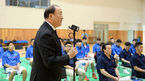 [OSEN=진천, 이대선 기자] 17일 오후 충북 진천군 진천선수촌에서 김동광 감독이 지휘하는 남자농구대표팀 결단식이 열렸다. 방열 대한농구협회장이 선수단을 격려하고 있다. 김동광 감독이 지휘하는 남자농구대표팀은 오는 23