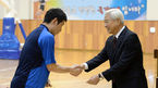 [OSEN=진천, 이대선 기자] 17일 오후 충북 진천군 진천선수촌에서 김동광 감독이 지휘하는 남자농구대표팀 결단식이 열렸다. 김동관 감독이 방열 대한농구협회장과 악수를 나누고 있다. 김동광 감독이 지휘하는 남자농구대표팀