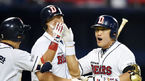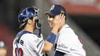 [OSEN=잠실, 민경훈 기자] 17일 오후 서울 잠실야구장에서 열린 '2015 타이어뱅크 KBO 리그' 두산 베어스와 롯데 자이언츠의 경기, 8회말 두산 선두타자 홍성흔이 좌익수 왼쪽 2루타를 날린 후 2루에서 강동우 코치와 하이파이브를 하