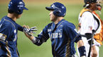 [OSEN=대전, 손용호 기자] 18일 오후 대전 한화생명이글스파크에서 벌어진'2015 타이어뱅크 KBO 리그' 한화 이글스와 NC 다이노스의 경기 2회초 2사 만루서 2타점 적시타를 친 김태군이 후속타자의 안타때 홈을 밟자 테임즈가 밝게 웃