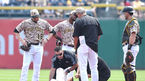 [OSEN= LA(미국 캘리포니아주), 박승현 특파원]18일(이하 한국시간)시카고 컵스와 홈경기에 상대 주자와 부딪쳐 무릎 부상을 당한 피츠버그 파이어리츠 강정호가 바로 병원으로 이동, MRI 검진을 받고 있다. 결과는 바로 알려지지