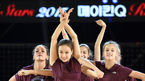 [OSEN=잠실실내체, 지형준 기자] '메이킨Q 리드믹 올스타즈 2015' 세계 리듬체조 올스타 초청 갈라쇼 공개 리허설이 25일 오후 서울 잠실실내체육관에서 열렸다. 손연재가 소녀시대 '라이언 하트'에 맞춰 리허설을 마치고 동료선수