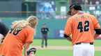 [OSEN=대전, 민경훈 기자] 26일 오후 대전광역시 한화생명이글스파크에서 열린 '2015 타이어뱅크 KBO 리그' 한화 이글스와 넥센 히어로즈의 경기, 이 날 시구에 한화 로저스의 어머니 바스케즈와 시타에 한화 탈보트의 딸 케이시로