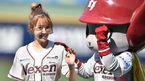 [OSEN=목동, 이동해 기자] 27일 오후 목동야구장에서 열린 '2015 타이어뱅크 KBO 리그' 넥센 히어로즈와 KT wiz의 경기가 시작되기 전 크레용팝 엘린이 시타를마치고 인사를 하고있다. 넥센 히어로즈 우완 양훈이 팀의 3위 경쟁을 위