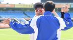 [OSEN=인천, 이대선 기자] 29일 오후 인천SK행복드림구장에서 열릴 '2015 타이어뱅크 KBO 리그' SK 와이번스와 kt wiz의 경기에 앞서 SK 정의윤과 kt 박경수가 이야기를 나누고 있다. SK는 kt 위즈와의 시즌 최종전 선발 투수로 메릴 켈리