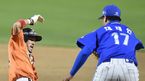 [OSEN=대전, 최규한 기자] 30일 오후 대전 한화생명이글스파크에서 '2015 타이어뱅크 KBO 리그' 한화 이글스와 삼성 라이온즈의 경기가 열렸다. 1회말 한화 공격 1사 1루 상황 김경언이 삼진을 당하는 순간, 주자 이용규가 1루로 귀루