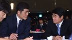 [OSEN=최규한 기자] 1일 오후 서울 청담동 호텔리베라에서 '2015~2016 KOVO 남자 신인선수 드래프트'가 진행됐다. 삼성화재 신치용 단장과 임도헌 감독이 지명권 결정을 앞두고 의견을 나누고 있다. 이번 남자 배구 드래프트 참가자는