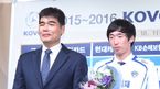 [OSEN=최규한 기자] 1일 오후 서울 청담동 호텔리베라에서 '2015~2016 KOVO 남자 신인선수 드래프트'가 진행됐다. 삼성화재 임도헌 감독이 4라운드에서 고등학교를 졸업하고 드래프트에 나선 한병주를 지명한 뒤 기념촬영을 하고 있