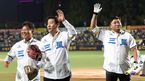 [OSEN=대구, 최규한 기자] 2일 오후 대구구장에서 '2015 타이어뱅크 KBO 리그' 삼성 라이온즈와 kt 위즈의 경기가 열렸다. 시구, 시타, 시포를 맡은 박충식, 양준혁, 이만수가 행사를 마치고 그라운드를 나서며 팬들의 환호에 답하고