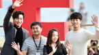 [OSEN=부산,박준형 기자]3일 오후 부산 해운대 BIFF 빌리지에서 열린 영화 '돌연변이' 야외무대인사에서 출연배우들과 권오광 감독이 포즈를 취하고 있다. 영화 '돌연변이'는 신약 개발 부작용으로 생선인간이 된 청년 박구(이광