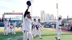 [OSEN=인천, 민경훈 기자] 3일 오후 인천 SK행복드림구장에서 열린 '2015 타이어뱅크 KBO 리그' SK 와이번스가 NC 다이노스와의 경기, 8회말 1사 SK 나주환이 좌월 역전 솔로 홈런을 날린 후 홈을 밟고 있다. 다 잡은 듯 했던 5위를 놓칠