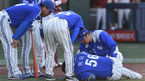 [OSEN=목동, 백승철 기자] 3일 오후 서울 목동구장에서 열린 '2015 타이어뱅크 KBO 리그' 넥센 히어로즈와 삼성 라이온즈의 경기 7회초 선두타자 이지영이 자신의 타구에 맞고 고통을 호소하고 있다. 넥센 히어로즈 우완 양훈이 시
