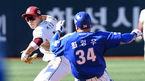 [OSEN=수원, 최규한 기자] 3일 오후 수원 케이티 위즈파크에서 '2015 타이어뱅크 KBO 리그' kt 위즈와 한화 이글스의 경기가 열렸다. 6회초 한화 공격 선두타자로 나선 이용규가 투수 앞 땅볼을 치고 있다. 원정팀 한화는 좌완 선발