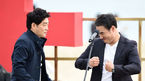 [OSEN=부산, 지형준 기자] 4일 오후 부산 해운대 BIFF 빌리지에서 열린 영화 '더 폰' 야외무대인사에서 배우 배성우가 손현주가 질문에 답을 하는 동안 팬들과 손짓을 하며 인사하자 이를 지켜보던 손현주가 배성우를 때리며 장난