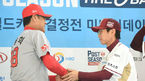 [OSEN=목동,손용호 기자] 6일 오후 목동구장에서 열린 '2015 타이어뱅크 KBO 와일드카드 결정전 미디어데이에서 김용희 염경엽 감독이 악수를 나누고있다. 프로야구 처음으로 벌어진 와일드카드 결정전 미디어데이는 KBO 정규시즌 4