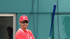 [OSEN=목동, 민경훈 기자] 7일 오후 서울 목동구장에서 '2015 타이어뱅크 KBO 리그' 넥센 히어로즈와 SK 와이번스의 와일드카드 결정 1차전이 열릴 예정인 가운데, SK 김용희 감독이 그라운드 위에서 배트를 들고 선수들의 훈련을 지