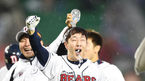 [OSEN=잠실, 손용호 기자] 10일 오후 서울 잠실야구장에서 열린 '2015 타이어뱅크 KBO 리그' 포스트시즌 두산 베어스와 넥센 히어로즈의 준플레이오프 1차전,10회말 1사 2루 대타 박건우가 끝내기 안타를 치고 환호하고 있다. 두산과