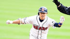 [OSEN=잠실, 지형준 기자] 10일 오후 서울 잠실야구장에서 열린 '2015 타이어뱅크 KBO 리그' 포스트시즌 두산 베어스와 넥센 히어로즈의 준플레이오프 1차전, 7회말 2사 3루에서 두산 정수빈이 동점 적시 2루타를 날리고 강동우 코치