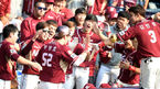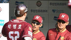 [OSEN=잠실, 손용호 기자] 10일 오후 서울 잠실야구장에서 열린 '2015 타이어뱅크 KBO 리그' 포스트시즌 두산 베어스와 넥센 히어로즈의 준플레이오프 1차전,6회초 박병호가 니퍼트를 상대로 솔로홈런을 치고 염경엽 감독의 환영을
