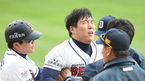 [OSEN=잠실, 정송이 기자] 11일 오후 서울 잠실야구장에서 열린 '2015 타이어뱅크 KBO 리그' 포스트시즌 두산 베어스와 넥센 히어로즈의 준플레이오프 2차전, 5회초 1사 만루, 오재원의 희생플라이때 3루주자 김현수가 홈에서 넥센 포