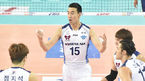 [OSEN=인천, 이동해 기자] 11일 오후 인천 계양체육관에서 'NH농협 2015-2016 프로배구 V리그' 남자부 대한항공과 한국전력의 경기가 열렸다. 1쿼터, 대한항공 김철홍이 공격을 했지만 한국전력의 두터운 블로킹 벽에 막히고있다. 대