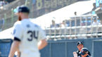 [OSEN=창원, 최규한 기자] 18일 오후 경남 창원 마산야구장에서 '2015 타이어뱅크 KBO리그' 포스트시즌 플레이오프 1차전 NC 다이노스와 두산 베어스의 경기가 열렸다. 1회초 두산 공격 무사 1, 3루 상황 NC 선발 해커의 폭투 때 3루 주