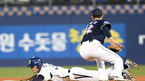 [OSEN=창원, 최규한 기자] 19일 오후 마산구장에서 '2015 타이어뱅크 KBO리그 플레이오프 2차전' NC 다이노스와 두산 베어스의 경기가 열렸다. 8회말 NC 공격 2사 2루 상황 이종욱 타석 때 주자 2루 도루에 성공하고 있다. 태그를 시도