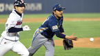 [OSEN=잠실, 민경훈 기자] 21일 오후 서울 잠실구장에서 열리는 '2015 타이어뱅크 KBO 리그' 플레이오프 3차전 두산 베어스와 NC 다이노스의 경기, 4회말 두산 박건우의 투수 앞 땅볼 타구때 NC 선발 손민한이 공을 잡아 1루로 송구하고