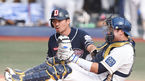 [OSEN=창원, 박준형 기자] 24일 오후 경상남도 창원 마산야구장에서 열린 2015 타이어뱅크 KBO리그 포스트시즌 플레이오프 5차전 NC 다이노스와 두산 베어스의 경기, 3회초 1사 3루 두산 김재호의 내야땅볼때 NC 김태군 포수가 홈쇄도