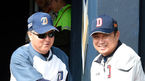 [OSEN=창원, 지형준 기자] 24일 오후 경상남도 창원 마산야구장에서 열릴 2015 타이어뱅크 KBO리그 포스트시즌 플레이오프, NC 다이노스와 두산 베어스의 5차전 경기에 앞서 NC 김경문 감독과 두산 김태형 감독이 인사를 나누고 있다.