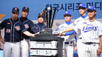 [OSEN=대구, 지형준 기자] 25일 오후 대구경북디자인센터 컨벤션홀에서 열린 한국시리즈 미디어데이에서 두산 유희관, 김현수, 김태형 감독, 삼성 류중일 감독, 구자욱, 박석민이 포토타임을 하고 있다. 2년 만에 리턴매치가 벌어