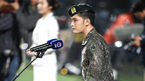 [OSEN=대구, 지형준 기자] 26일 오후 대구구장서 열리는 ‘2015 타이어뱅크 KBO 리그’ 삼성 라이온즈와 두산 베어스의 한국시리즈 1차전 경기에 앞서 김재중이 애국가를마치고 경례를 하고있다. 삼성은 피가로, 두산은 유희관이 나