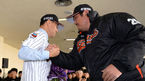 [OSEN=대구,박준형 기자] 26일 오후 대구구장서 열리는 ‘2015 타이어뱅크 KBO 리그’ 삼성 라이온즈와 두산 베어스의 한국시리즈 1차전 경기에 앞서 두산 박건우와 삼성 김상수가 장난을 치고 있다. 삼성은 피가로, 두산은 유희관