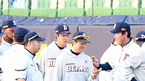 [OSEN=대구,박준형 기자] 27일 대구구장에서 열리는 '2015 타이어뱅크 KBO리그' 한국시리즈 2차전 삼성 라이온즈와 두산 베어스의 경기에 앞서 손가락 부상 당했던 정수빈이 코칭스태프와 이야기를 나누고 있다. 이날 장원삼과 니퍼