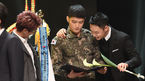 [OSEN=정송이 기자] 29일 오후 서울 국립극장 해오름극장에서 진행된 '2015 대한민국 대중문화예술상' 시상식에서 국무총리표창을 수상한 JYJ가 거수경례를 하고 있다. 문화체육관광부가 주최하고 한국콘텐츠진흥이 주관하는 ‘대