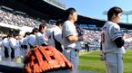 [OSEN=잠실, 최규한 기자] 31일 오후 서울 잠실구장에서 '2015 타이어뱅크 KBO 리그' 한국시리즈 5차전 두산 베어스와 삼성 라이온즈의 경기가 열렸다. 두산 선수들이 경기 시작을 국기에 대한 경례를 하고 있다. 두산 베어스가 우승