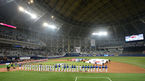 [OSEN=고척, 지형준 기자] 4일 오후 서울 고척스카이돔에서 '2015 서울 슈퍼시리즈' 대한민국과 쿠바의 1차전이 열렸다. 경기에 앞서 양팀 선수들이 국민의례를 하고 있다. 대한민국 야구 국가대표팀은 오는 8일 개최되는 ‘2015 프