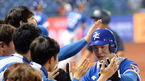 [OSEN=타이중(대만), 이대선 기자] 16일 오후 대만 타이중 인터컨티넨탈 야구장에서 열린 '2015 WBSC 프리미어 12 ' 대한민국과 쿠바의 8강 경기,2회초2사 1,2루 이대호의 적시타때홈을 밟은 이용규가 동료들의 환영을 받고 있다. 한국