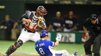 [OSEN=도쿄(일본), 지형준 기자] 21일 오후 일본 도쿄돔에서 벌어진 '2015 WBSC 프리미어12' 한국-미국의 결승전, 8회초 무사 1,2루 정근우가 김현수의 외야플라이때 홈을 파고 들었지만 아웃되고있다. 한국은 지난 19일 일본과의 준결