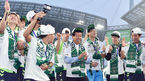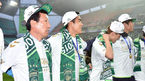 [OSEN=전주, 이동해 기자] 21일 오후 전라북도 전주시 전주월드컵경기장서 열린 '현대오일뱅크 K리그 클래식 2015' 전북 현대와 성남 FC의 K리그 클래식 37라운드를 마치고 열린 우승 시상식에서 이근호와 박원재가 팬들에게 인사를