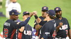 [OSEN=도쿄(일본), 지형준 기자] 21일 오후 일본 도쿄돔에서 벌어진 '2015 WBSC 프리미어12' 한국-미국의 결승전,식전행사에서 이대호 박병호 손아섭이하이파이브를 하고 있다. 한국은 지난 19일 일본과의 준결승전에서 9회 드라마틱
