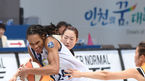 [OSEN=인천, 정송이 기자] 신한은행이 KB 스타즈를 74대 71로 접고 연장전 끝에 승리했다. 연장, KB 햄비와 하은주가 리바운드를 다투고 있다. /ouxou@osen.co.kr
