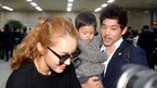 [OSEN=김포공항, 최규한 기자] '프리미어12'에서 우승을 거머쥔 대한민국 야구대표팀이 22일 오후 김포공항을 통해 귀국했다. 이용규가 부인인 유하나와 아들의 환영을 받으며 발걸음을 옮기고 있다. 도쿄돔에 태극기가 휘날렸다.