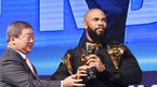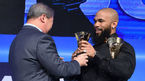 [OSEN=박준형 기자] 24일 오후 서울 서초구 The-K 호텔 컨벤션센터 그랜드볼룸에서 열린 '2015 타이어뱅크 KBO 어워즈'에서 넥센 박병호가 테임즈의 축하를 받고 있다. 이날 시상식은 올 시즌 최고의 활약을 선보인 MVP와 신인상을 선
