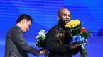 [OSEN=박준형 기자] 24일 오후 서울 서초구 The-K 호텔 컨벤션센터 그랜드볼룸에서 열린 '2015 타이어뱅크 KBO 어워즈'에서 NC 테임즈가 타율,득점, 출루율, 장타율상을 수상한뒤 박병호의 축하 꽃다발을 받고 있다. 이날 시상식은 올