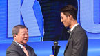 [OSEN=이대선 기자] 24일 오후 서울 서초구 The-K 호텔 컨벤션센터 그랜드볼룸에서 올 시즌 최고의 활약을 선보인 MVP와 신인상을 선정하는 2015 타이어뱅크 KBO 시상식이 열렸다. KBO 신인상을 수상한 삼성 구자욱이 구본능 총재에게