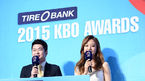 [OSEN=이대선 기자] 24일 오후 서울 서초구 The-K 호텔 컨벤션센터 그랜드볼룸에서 올 시즌 최고의 활약을 선보인 MVP와 신인상을 선정하는 2015 타이어뱅크 KBO 시상식이 열렸다. 임경진, 배지현 아나운서가 시상식 진행을 하고 있다